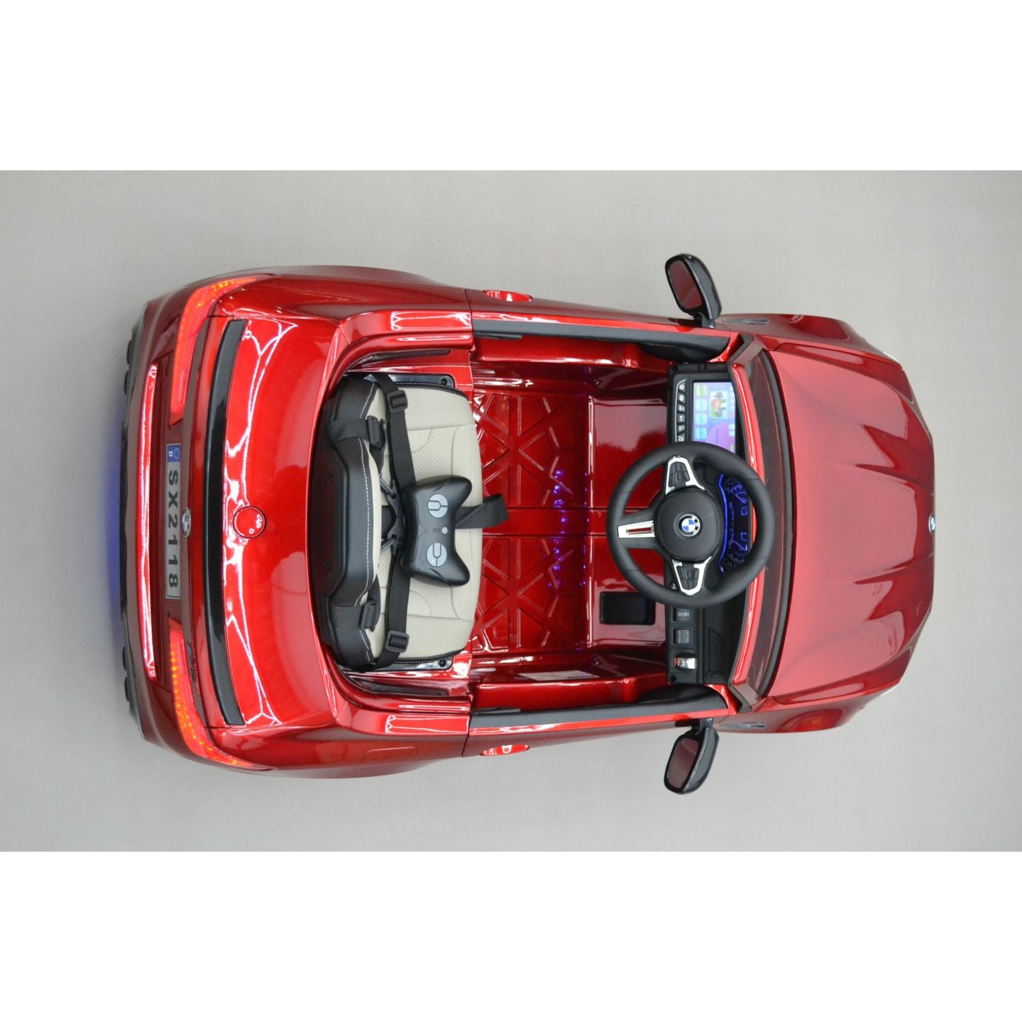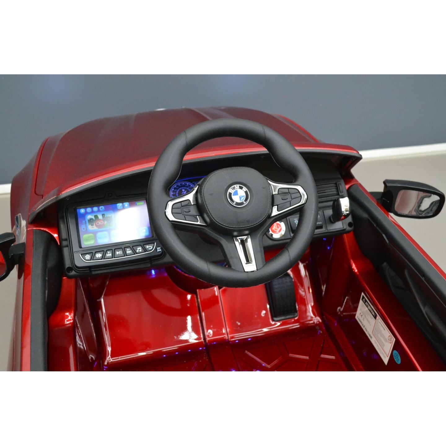 Rien de mieux qu'une véritable peinture rouge sur cette BMW M5 24 Volts enfant pour faire ressortir les appendices suivants : calandre, jantes, rétroviseurs et même le diffuseur noir satiné. La réplique parfaite de cette bavaroise confirme la nécessité d'opter pour une voiture enfant sous licence officielle. Elle n'a vraiment pas à pâlir face à la vraie qui se négocie à partir de 147.300€.