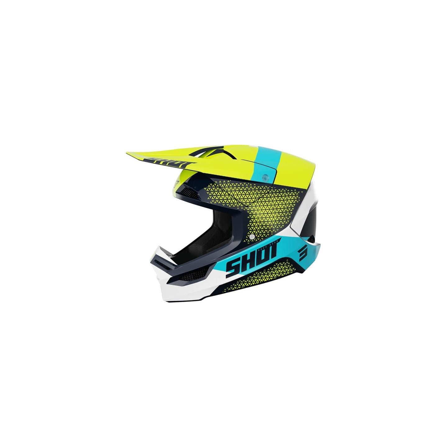 Casque cross enfant Shot moto quad furious kid versus neon yellow turquoise homologué ECE R22-05