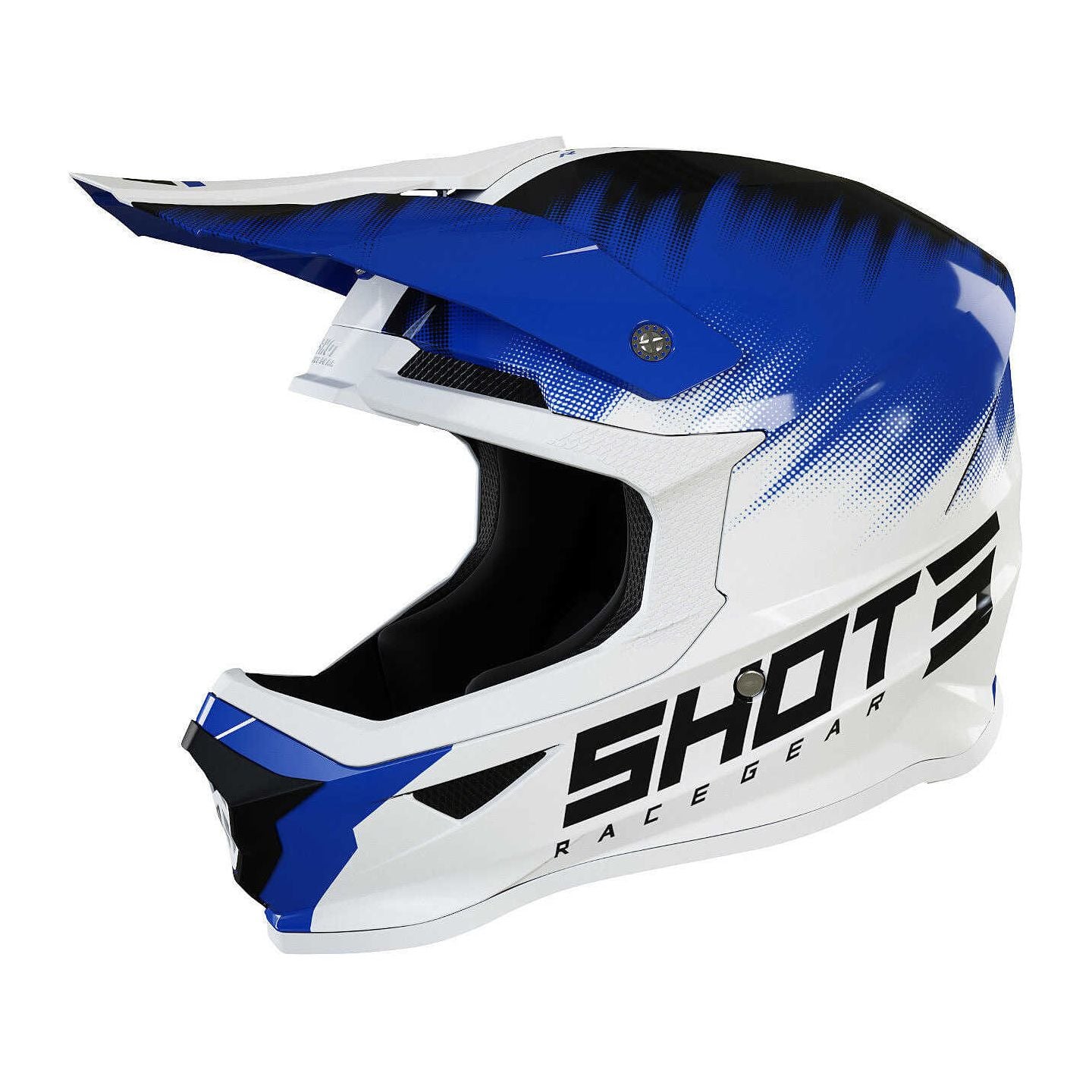 Casque cross enfant Shot moto quad Pulse Kid Revenge Blanc Bleu Noir
