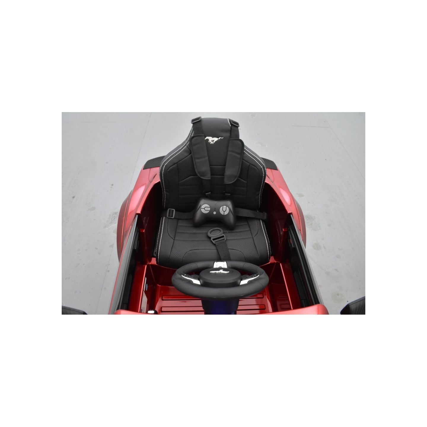 Heureusement que cette Mustang est équipée d'une télécommande parentale 2.4 Ghz codée. Ainsi, en plus de pouvoir promener bébé à distance dans les débuts, elle permet de reprendre le contrôle à tout moment même si c'est bébé qui conduit. Rassurant. Surtout si votre bout d'chou a tendance à se prendre pour Alonso.