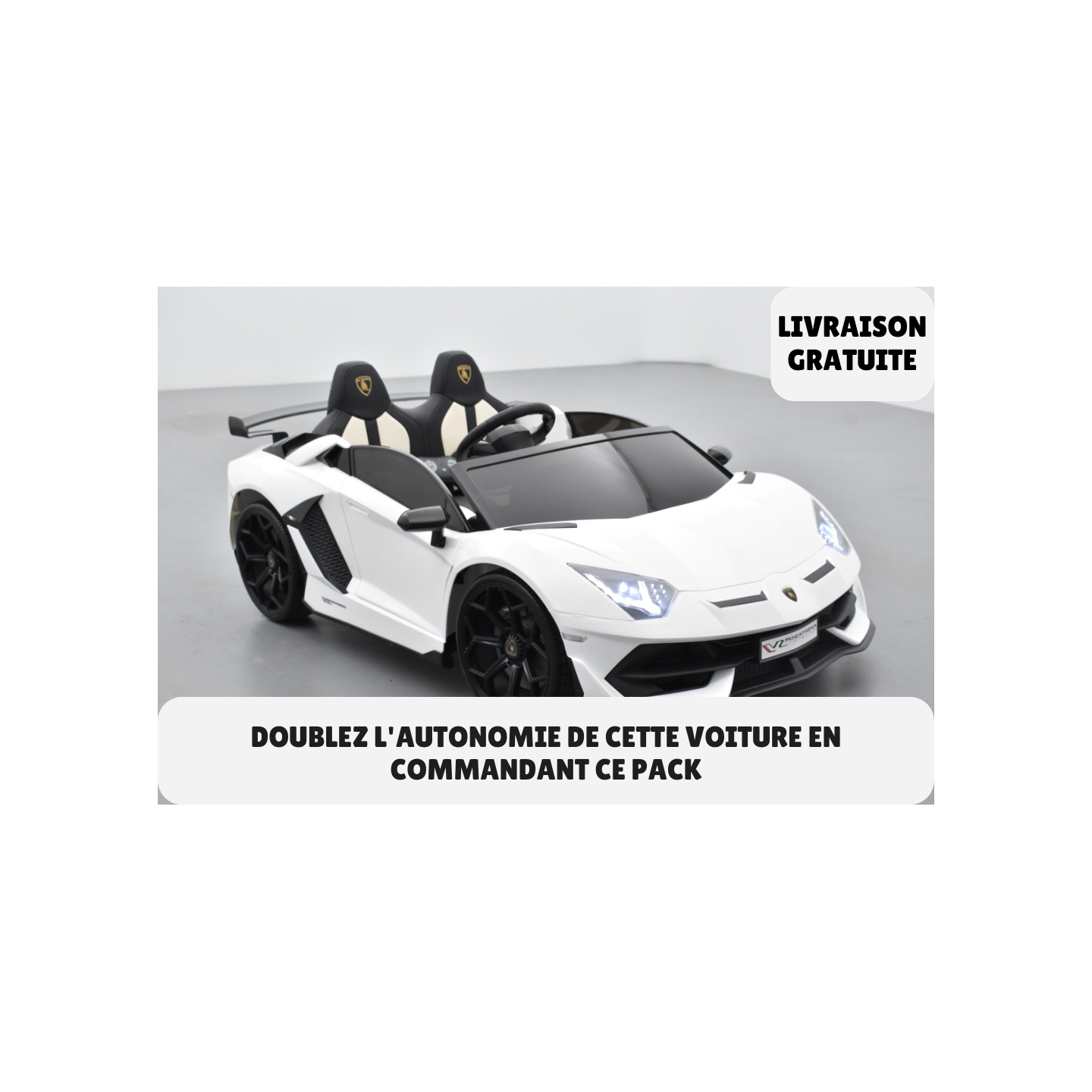 Pack Lamborghini SVJ 24V Blanc + 2ème chargeur + 2ème batterie + housse + plaques