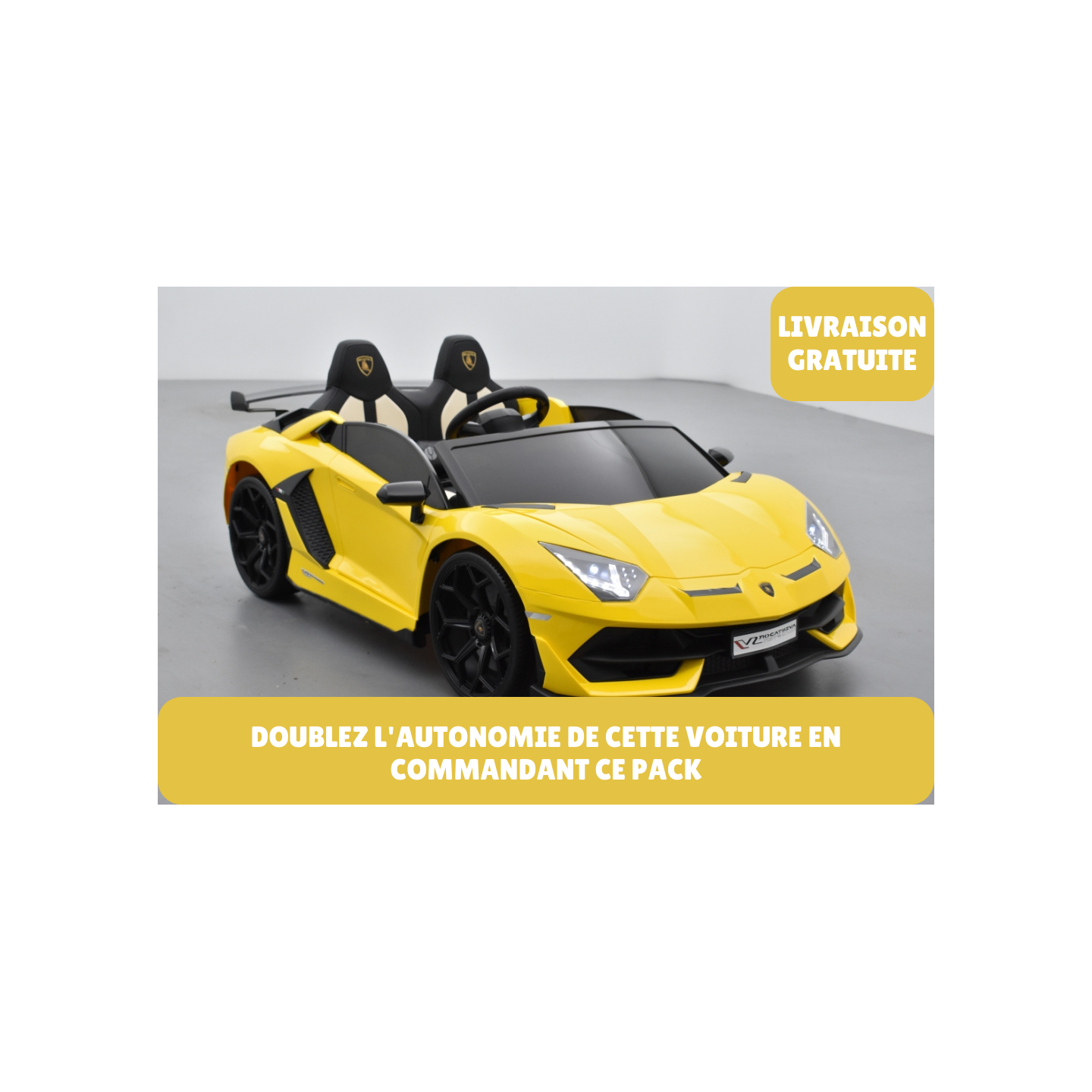 Lamborghini SVJ 24V Jaune+ 2ème chargeur + 2ème batterie + housse + plaques